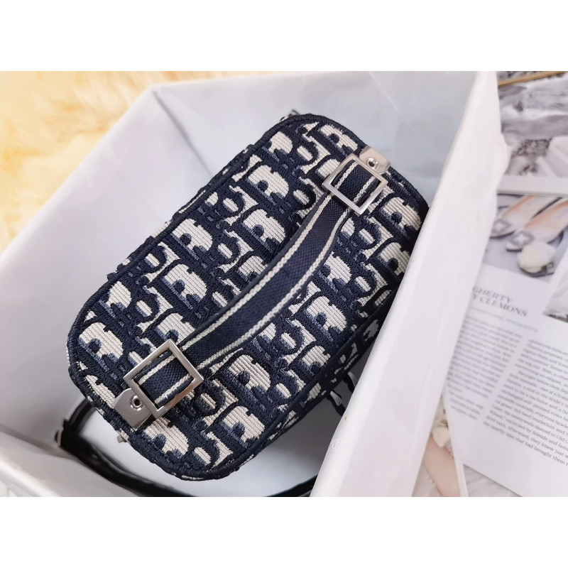 Crafted from Oblique jacquard fabric, it's embossed with the CD signature on the top and bottom. The interior is elegant and spacious with a two-way zip. The sturdy leather top handle and adjustable, detachable shoulder strap make this pouch the ideal everyday companion by hand, over the shoulder or across the body.
